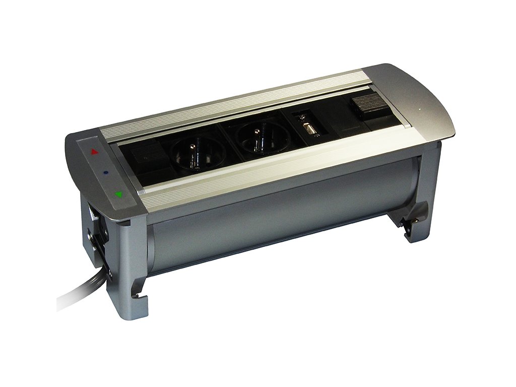 Stolní zásuvkové elektricky otočné pole, 2x230V, 2xUSB.