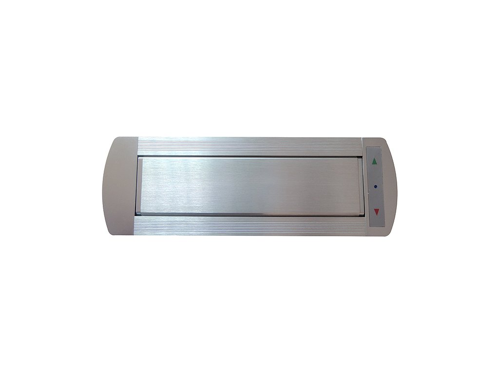 Povrchová úprava eloxovaný hliník F1. Ochrana proti uzavření zásuvkového pole při osazení vstupu 230V/RJ45.