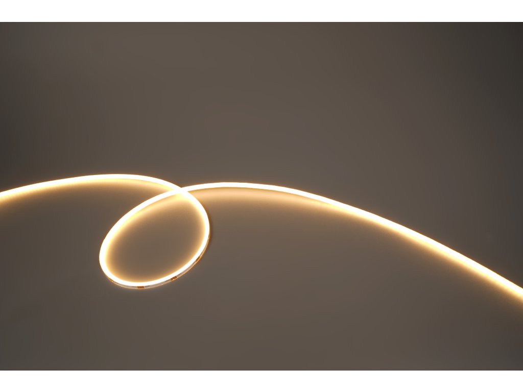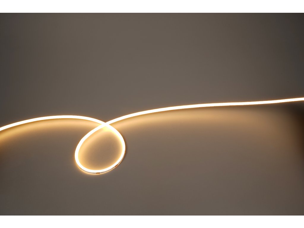 Ultra tenký LED pásek Neonflex 3x3mm s vertikálním ohybem, vysokým CRI ≥ 90 a rovnoměrným světlem bez bodů. Ideální pro designové interiéry a nábytkové osvětlení.
